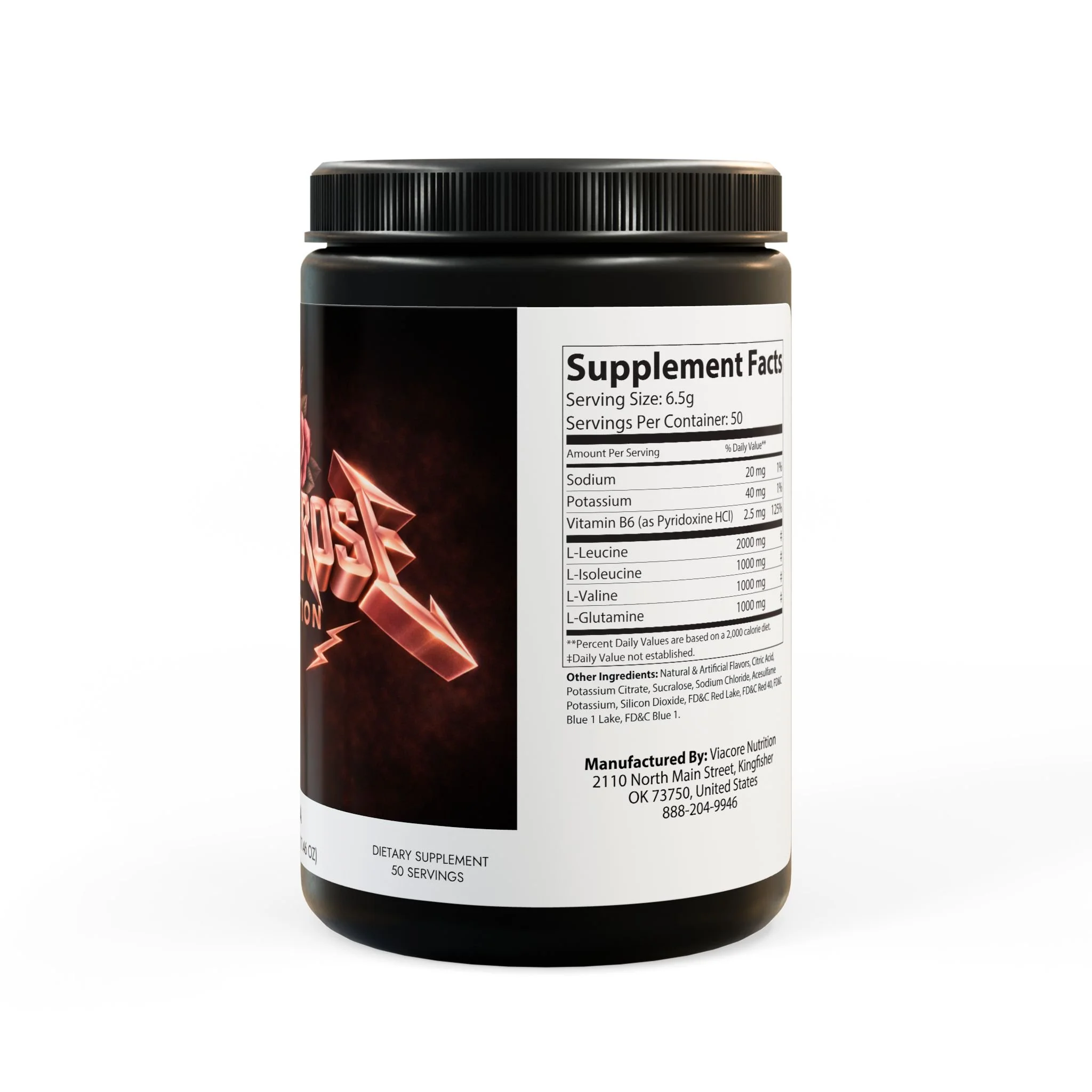 Key ingredients include Sodium, Potassium, Vitamin B6 (as Pyridoxine HCl), L-Leucine, L-Isoleucine, L-Valine, and L-Glutamine.